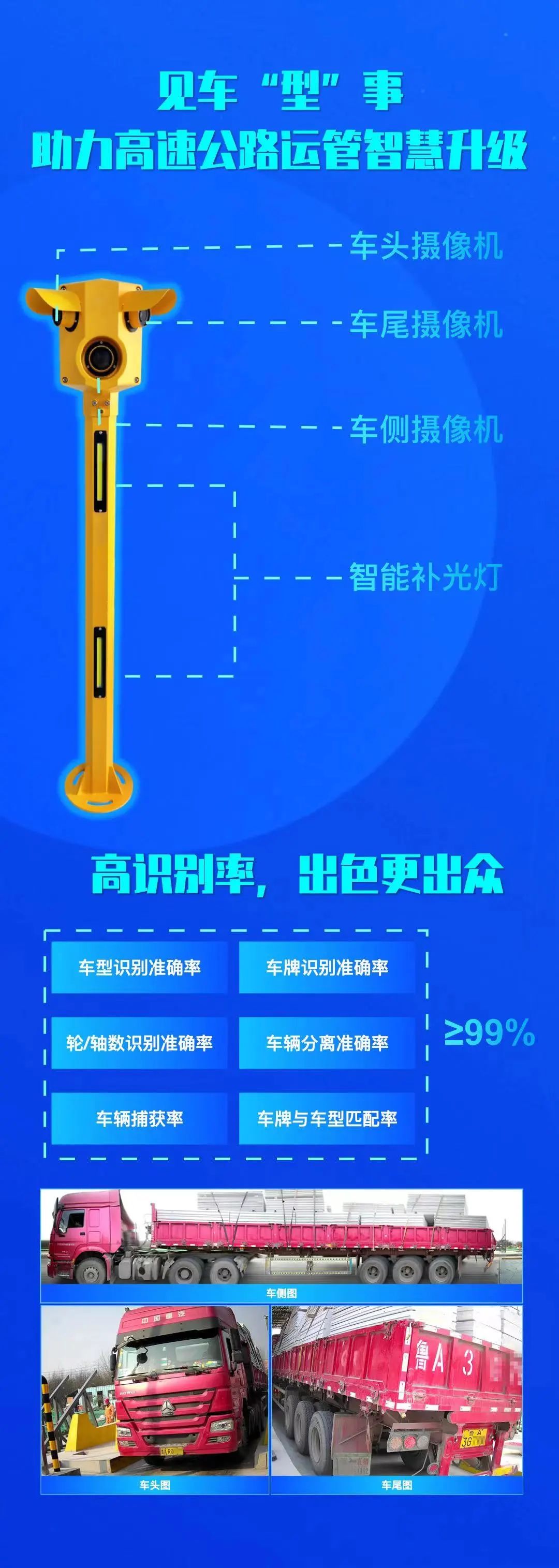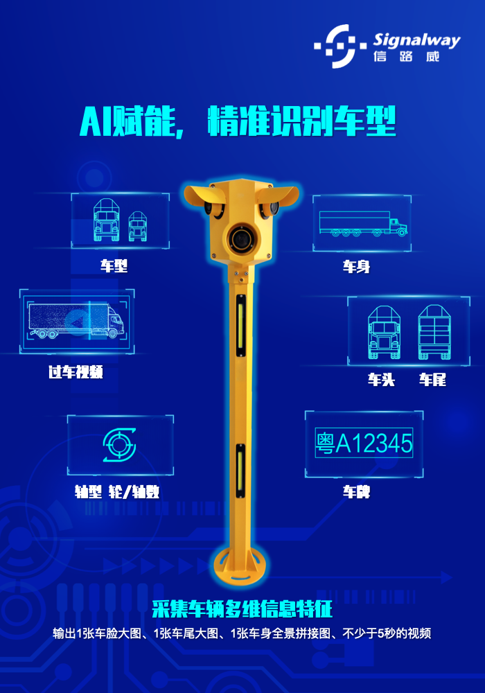 信路威視頻車型識別系統(tǒng)集圖像采集、圖像處理、圖像抓拍、高清過車錄像、車輛特征檢測、車牌識別、車型分類、輪軸數(shù)識別于一體,可應(yīng)用于收費(fèi)站入口自助發(fā)卡車道、出口自助繳費(fèi)車道、入出口ETC專用車道、入出口ETC/MTC混合車道、拒超車道,實(shí)現(xiàn)通行車輛特征精準(zhǔn)識別、套牌車查處、逃費(fèi)治理等,在“取消省界收費(fèi)站“和“一張網(wǎng)”運(yùn)營管理和服務(wù)中發(fā)揮關(guān)鍵作用。